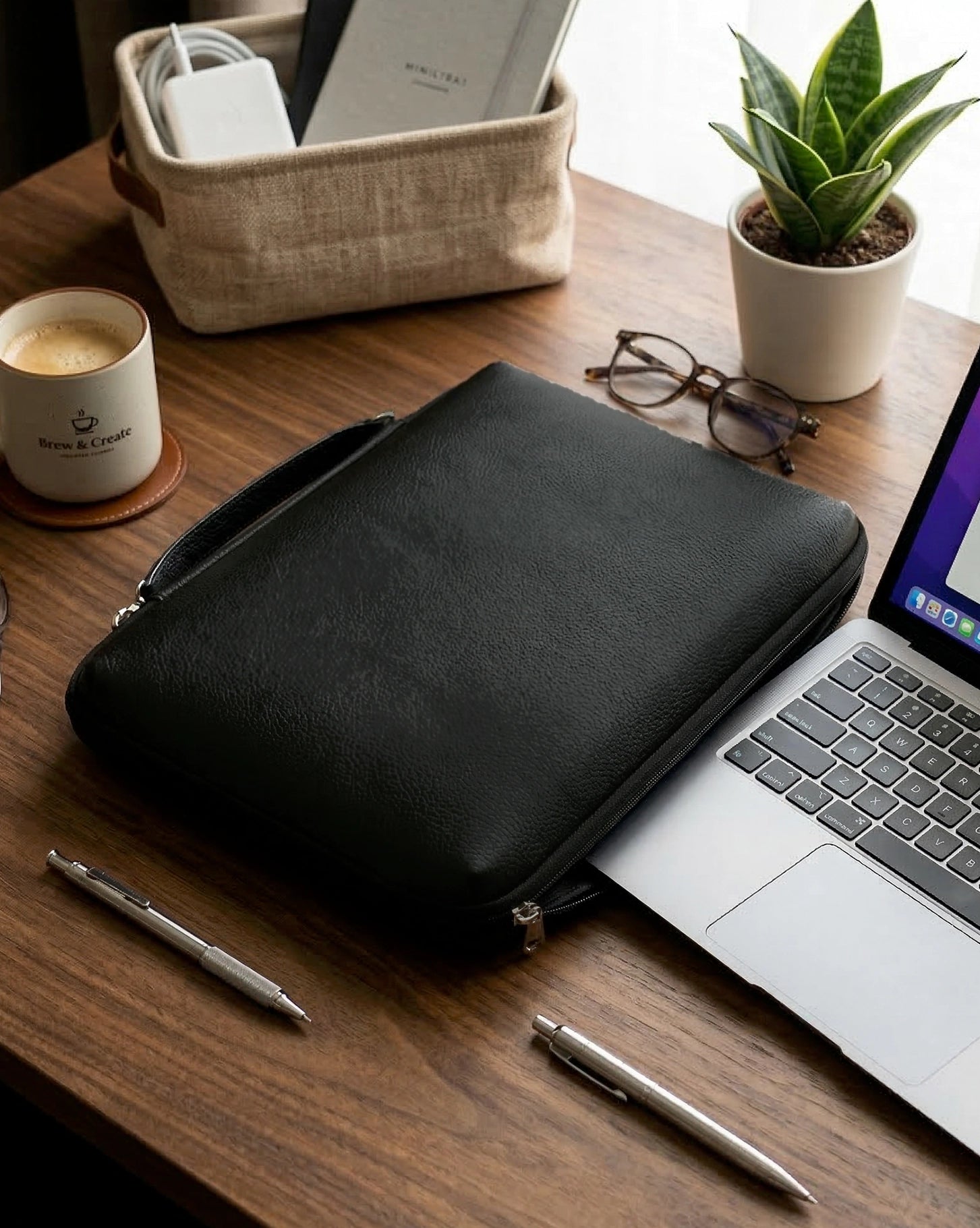 ✔︎ Premium vegan leather finish for a polished look